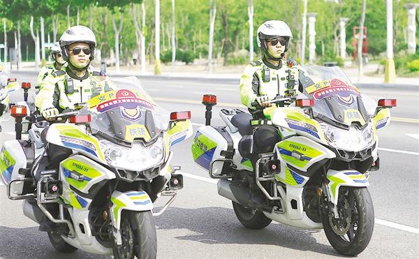 周口市公安局交警铁骑党员勤务队员在城区巡逻