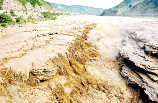 8月23日在山西吉县拍摄的洪水过境后的黄河壶口瀑布(无人机照片)。