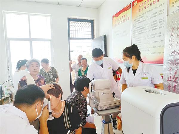 为关爱群众眼睛健康,周口市眼科医院组织医务人员走乡进村,为群众免费检查视力,测血糖等,宣传科学用眼知识。据悉,该院计划用三年时间,走遍全市每一个乡镇和村庄。两年来,该院医务人员已走进2000多个村庄开展眼健康科普知识,受益群众近百万人。近日,周口市眼科医院联合西华县李大庄乡政府为群众开展眼健康检查活动。 记者 刘伟 摄