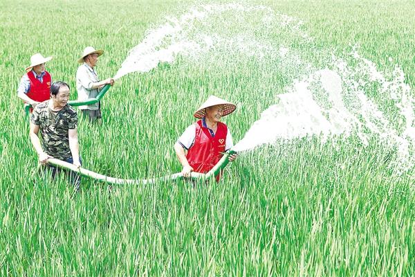 8月23日,在浙江省湖州市德清县新安镇舍东村,党员志愿者帮助村民抽水灌溉稻田。 近来,为应对旱情,各地动员组织各方力量积极投入抗旱保民生工作中,全力保障群众饮水安全和农业生产灌溉。新华社发