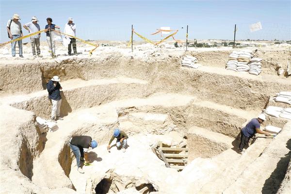 8月23日,考古人员在以色列南部内盖夫沙漠地区发掘出的古代“豪宅”遗址现场工作。以色列文物局23日发表声明说,考古人员在该国南部内盖夫沙漠地区发掘出一处古代“豪宅”遗址,建造时间距今约1200年。新华社发