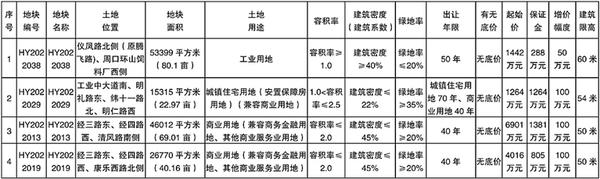 备注:1.HY2022038号地块为工业用地“标准地”出让,“标准地”控制性指标为:入驻该宗地的具体产业类型为仪器仪表制造业,投资强度不低于260万元/亩,亩均税收不低于6万元/亩,具体由周口先进制造业开发区管理委员会负责监督监管。竞得者需与管委会签订《工业用地“标准地”履约监管协议》,并出具《“标准地”企业信用承诺书》。2022年8月12日周口先进制造业开发区管理委员会出具的地上资产价款30805000元与土地捆绑出让,土地成交后,竞得人须另将地上资产价款及时汇入周口市淮阳区产业集聚区管理委员会账户,开户行:中原银行淮阳支行,账号:10029120110000000041;地上资产交付由周口先进制造业开发区管理委员会负责。2.HY2022013号地块兼容商务金融和其他商业服务业的总建筑面积不得超过地块内总建筑面积的30%,根据2022年度淮阳区国土空间规划委员会第十次会议精神,土地出让合同签订后30日内交纳土地价款的50%,12月内交清下余土地价款,并支付同期银行贷款利息。3.HY2022019号地块兼容商务金融和其他商业服务业的总建筑面积不得超过地块内总建筑面积的30%,根据2022年度淮阳区国土空间规划委员会第十次会议精神,土地出让合同签订后30日内交纳土地价款的50%,12月内交清下余土地价款,并支付同期银行贷款利息。4.具体建设方案须报规划部门批准后实施,土地出让合同签订后,12个月内必须开工建设,工期35个月,土地成交价款需在土地出让合同签订后60日内交清,交地时间6个月内。5.根据淮政【2019】45号文件精神,竞得人摘牌土地后,应将项目施工标发包给在淮阳设立公司的施工单位;房地产开发项目非淮阳境内企业竞买人在竞买申请时,申请书中应明确成立新公司、公司出资构成及成立时间。6.土地竞买保证金必须以竞买申请人(单位)自身的名义交纳,竞买申请人(单位)与交款人(单位)名称不一致的,无法确认其竞买资格,交纳款项无效。7.具体以规划部门出具的规划指标为准,详见规划设计条件或批复文件。