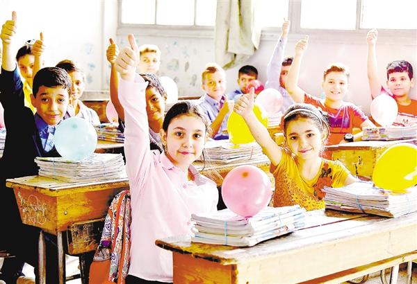 9月4日,叙利亚大马士革一所学校的学生在教室里上课。