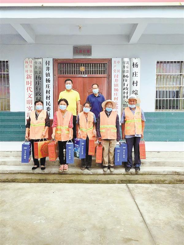 8月31日上午,付井镇杨庄行政村组织开展中秋节慰问活动,为保洁员们送上月饼、高钙奶等爱心礼物和节日问候,感谢他们默默无闻地奋战在清洁一线,为杨庄行政村的整洁和美丽付出辛勤劳动。