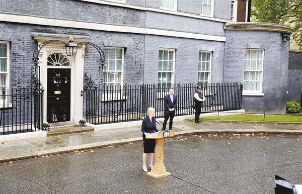 特拉斯在返回位于伦敦唐宁街10号的首相府后发表讲话(如图)说,她上任后将优先解决经济增长、能源危机和改善医疗等要务。她表示,将通过减税和改革促进经济增长,确保民众享有国民保健制度服务,并将于本周采取行动应对能源账单问题,保障英国未来能源供给。