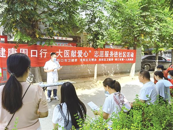 9月6日上午,周口市第一人民医院到西城社区阳光花园小区开展“健康周口行、大医献爱心”志愿服务进社区活动。活动现场,健康巡讲专家为社区群众讲解健康知识,受到群众的欢迎。