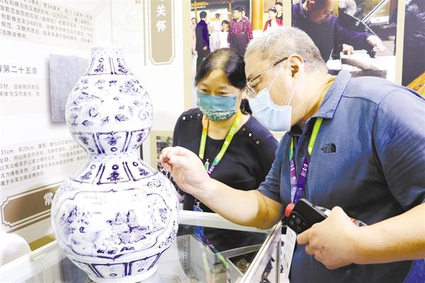 9月1日上午,由国家文物局、河南省人民政府指导,中国博物馆协会、中国自然科学博物馆学会、郑州市人民政府共同主办的第九届“中国博物馆及相关产品与技术博览会”(简称“博博会”)在郑州国际会展中心开幕。鹿邑县长军古陶瓷博物馆参展,并展示了具有老子故里特色的图片、音像制品和珍藏的元青花葫芦瓶。记者 侯国防 通讯员 于新豪 摄
