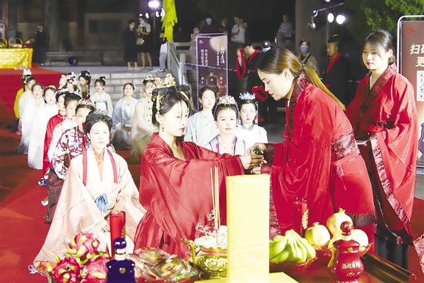 活动现场,来自鹿邑县社会各界的汉服爱好者,身着端庄华美的礼制汉服,通过“献祭舞乐”“三献读祝”等礼仪,分别为大家展现了国家级非遗项目“老子祭典”和传统民俗“中秋祭月”等仪式,再现了中华传统文化祭祀礼仪之美,体现了老子故里百万人民对祖国昌盛、人民安康的共同祝愿,为欢度中秋佳节、喜迎党的二十大召开营造了浓厚氛围。