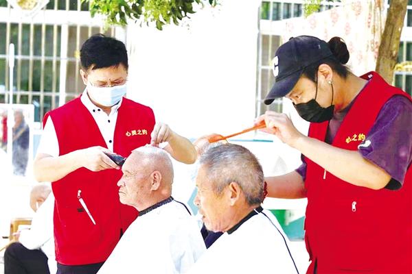 为让老人过上一个幸福快乐的中秋佳节,9月2日,周口筑梦公益志愿者服务队的志愿者们带着慰问品到太康县老冢镇谢堂村敬老院看望慰问这里的老人并为老人理发。记者 张洪涛 摄