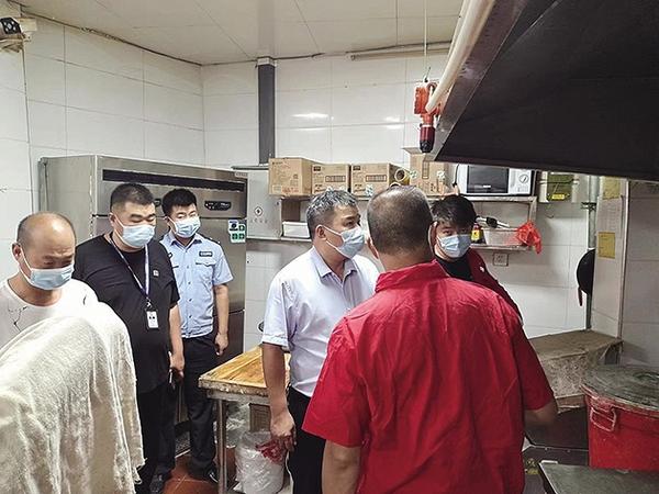 检查组先后到辖区企业、超市、宾馆、饭店等重点场所,着重开展消防安全、用电安全、食品安全、疫情防控管理等方面的安全检查(如图)。对检查中发现的安全隐患,现场督促相关企业和经营单位及时进行有效整改,针对检查中发现的灭火器缺失或过期、指示标志张贴不规范等问题提出整改建议,提醒经营者要认真开展自查工作,增强安全生产意识。