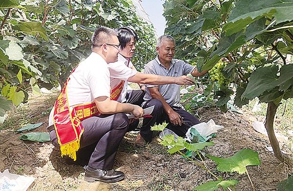 ④扶沟农商银行曹里支行客户经理为葡萄种植户提供送贷上门服务。