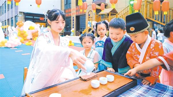 汉服秀、猜灯谜、学茶艺……9月9日,项城市一家幼儿园举办中秋游园会,让孩子体验不一样的中秋节,感受中秋传统文化的浪漫与美好。记者 张志新 通讯员 张鑫 摄