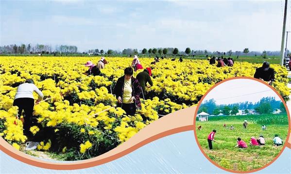 “家里的土地流转给合作社种菊花了,我们可以到地里采花,到扶贫车间干活,一天能挣80多元工资。有活干,累不着,还不耽误照顾家,这样多好啊!”幸福的笑容洋溢在中年妇女崔玉梅的脸上。