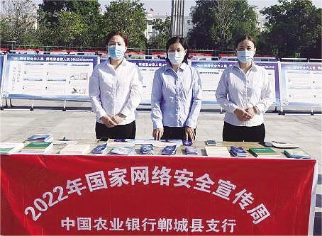农行郸城支行认真落实县人民银行和县网信中心工作要求,9月5日,抽调业务骨干在县政府门前开展网络安全集中宣传活动,向市民大力宣传普及网络安全知识,增强他们的网络安全意识。 冯振涛 张继平 摄