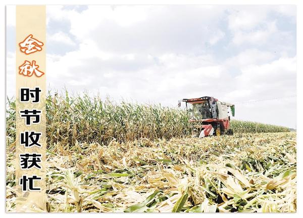 金秋时节,三川大地一片热火朝天的丰收景象,玉米田里,大型收割机来回穿梭,农民兄弟辛勤劳作,构成了一幅秀美的田园风光画。图为9月20日,淮阳区朱集乡洪楼行政村农民趁着良好天气抢收玉米。记者 刘俊涛 摄