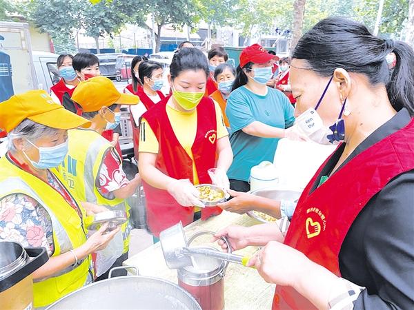 近日,鹿邑的一些志愿者到爱心粥屋开展志愿服务活动,为环卫工人盛饭,对环卫工人长年累月为维护优美整洁的城市环境和城市形象所付出的辛勤努力表示感谢,让环卫工人深受感动。记者 侯国防 通讯员 龚苗苗 摄