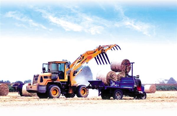 记者在该乡长营行政村田地里看到,搂草机把散落在地里的玉米秸秆搂成一行行,打捆机把秸秆捆成一包包,一派繁忙景象。