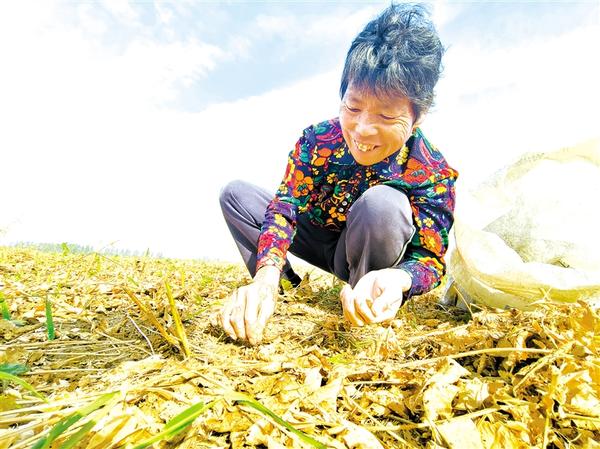 金灿灿的玉米,红彤彤的辣椒,胖墩墩的花生,亮晶晶的芝麻,勤劳的汗水换来了沉甸甸的果实,农民脸上洋溢着丰收的喜悦。