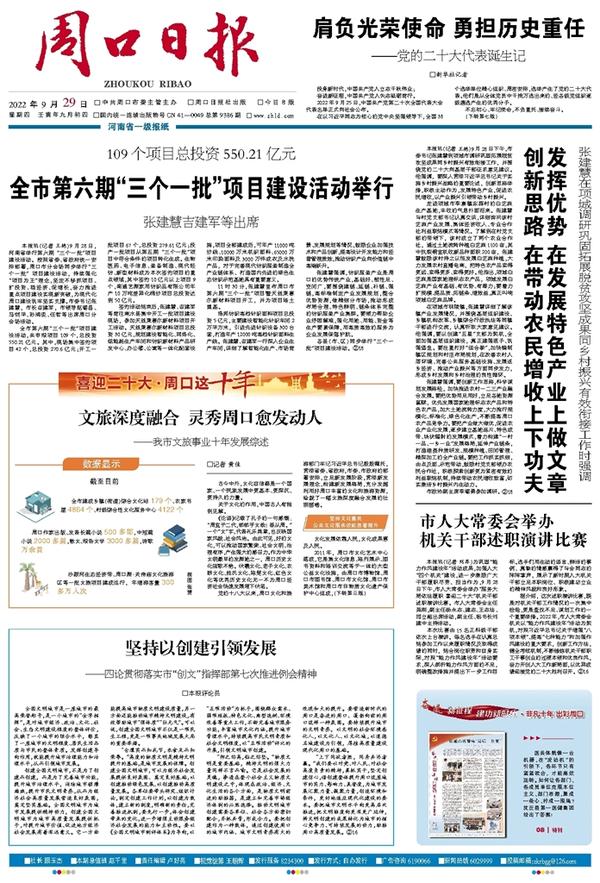 征程万里风正劲,重任千钧再出发。在实现第二个百年奋斗目标新的赶考路上,在建设“道德名城、魅力周口”征程中,让文化成为城市发展的持续动力,让担当成为周口时代最强音,以优异答卷喜迎党的二十大胜利召开。②2