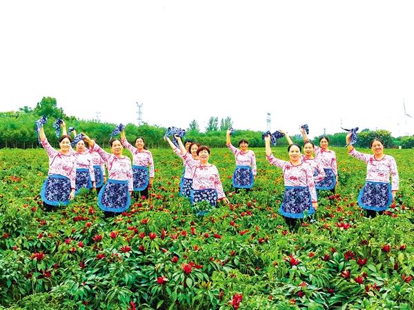 ▲近日,在西华县艾岗乡2万多亩辣椒田里,红红的辣椒挂满枝头,忙碌的农民笑逐颜开,呈现出一派喜庆丰收的景象。记者 张猛 摄