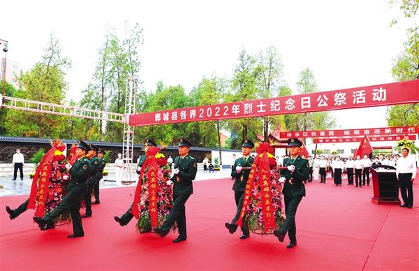 天地英雄气,千秋尚凛然。9月30日,郸城县社会各界在烈士陵园隆重举行2022年烈士纪念日公祭活动。县委书记李全林代表县委、县人大、县政府、县政协、县人民武装部整理花篮缎带,县长董鸿主持公祭仪式。