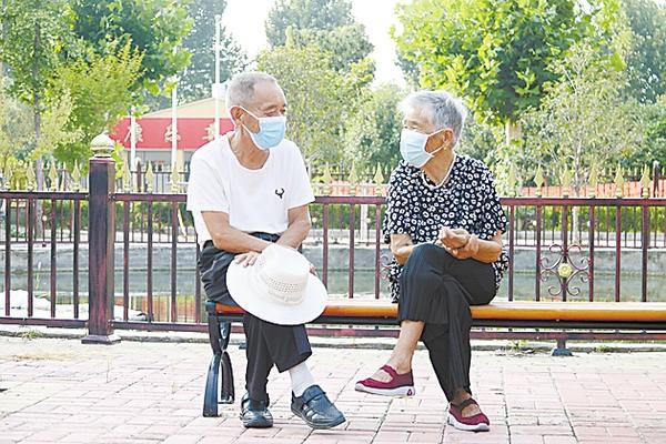槐店回族镇康乐尊长园内两位老人在聊天