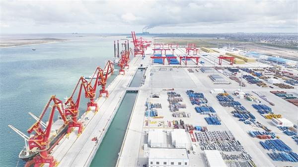 只见一排排红色岸桥耸立码头,集装箱起重机不停运转,港口一片繁忙景象。作为南通统筹推进的大通州湾重要组成部分,吕四起步港区被赋予了“江苏新出海口”的重要使命,是推动南通港城发展的重要组成部分,也为周口港城发展提供了绝佳范本。