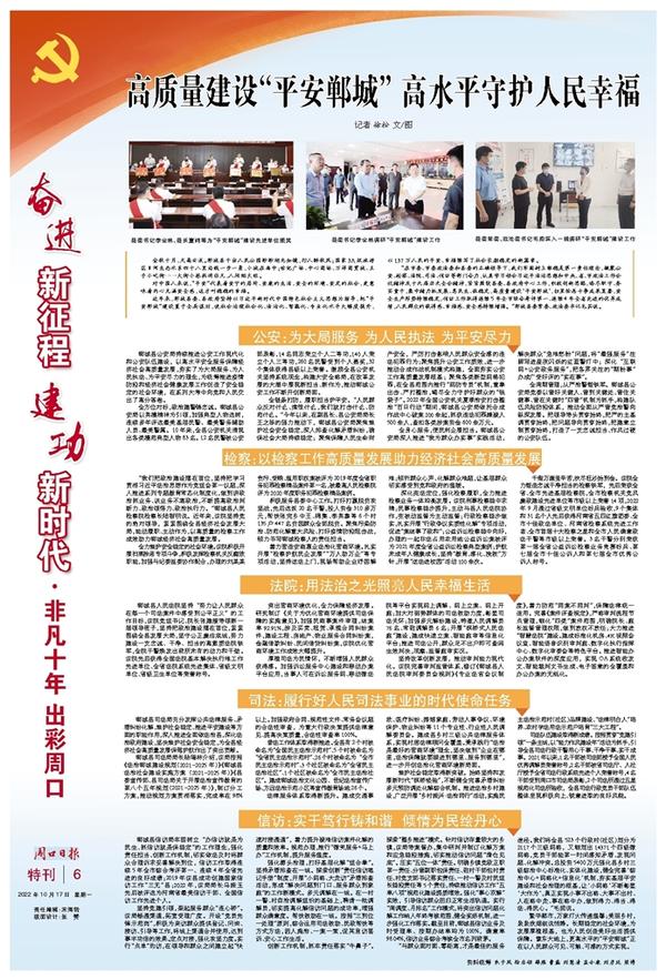 近年来,郸城县委、县政府坚持以习近平新时代中国特色社会主义思想为指导,把“平安郸城”建设置于全局谋划,使社会治理社会化、法治化、智能化、专业化水平大幅度提升,以137万人民的平安、幸福续写了社会长期稳定的新篇章。