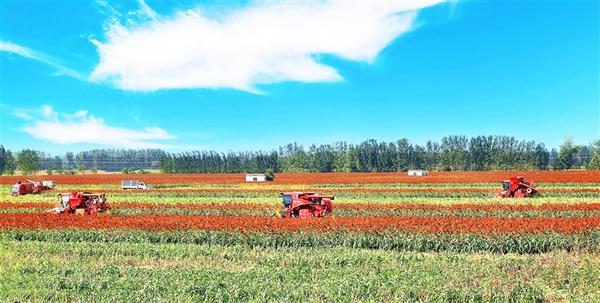 今年以来,扶沟县包屯镇在“五星”支部创建中,坚持以产业兴旺为抓手,采取“公司+合作社+种植户”模式大力发展订单农业,切实增加群众收入,稳步推进乡村振兴,走共同富裕之路。图为收割机在包屯镇谭岗村收割成片的高粱。记者 金月全 通讯员 王月霞 摄