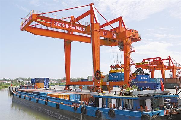 2022年9月1日上午,70多吨室内新型装饰材料从周口中心港码头装上集装箱货轮,27天后抵达印度蒙德拉港,自此,周口中心港码头又多了一条国际集装箱航线。