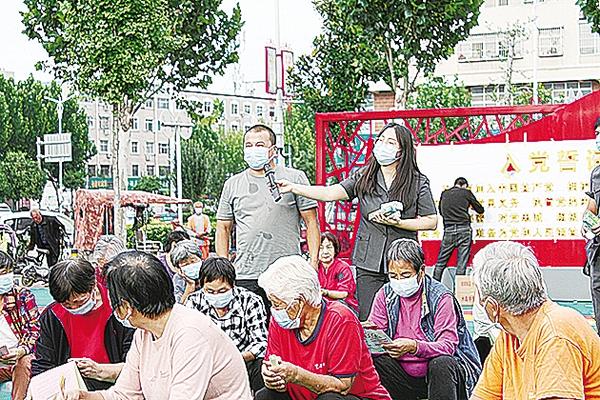 近日,川汇区人民法院的法官来到金海路办事处朱庄社区,开展“普法宣传进社区 法律知识送万家”主题党日活动。法官通过有奖竞答、法律咨询等方式,向群众进行法治宣传,以零距离、面对面的贴心服务,践行党员的初心使命。 通讯员 马殿力 摄