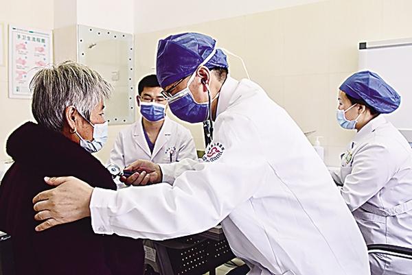 在门诊四楼高血压科诊室内,前来问诊的患者络绎不绝,高传玉耐心仔细地为闻讯而来的每位患者检查、诊断、指导用药、讲解生活饮食注意事项等,耐心地解疑释惑,受到患者的高度赞誉(如图)。
