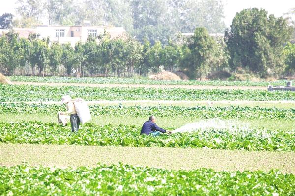 10月24日,淮阳区新站镇徐庄村民正在对种植的萝卜进行田间管理。有经验的菜农表示,萝卜叶片生长最适宜温度是5~25度,肉质根生长最适宜温度是18~20度,根据天气的变化,霜降过后这个时期正是萝卜等一些蔬菜产量形成的重要阶段,可以通过冲施或叶面施肥、浇水等有效提高蔬菜品质。记者 刘俊涛 摄