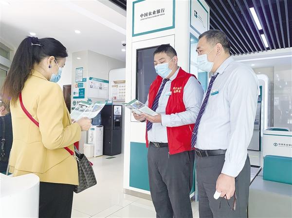 近日,农行周口分行主动作为、敢于担当,强化疫情防控期间的金融服务保障,引导广大客户特殊时期使用农行掌上银行自助办理业务,为客户提供精准度高、体验性好的优质服务,用实际行动赢得了客户的信赖与支持。图为10月22日,农行周口直属支行工作人员为客户介绍线上业务。 记者 徐如景 通讯员 高翔 冯振涛 摄
