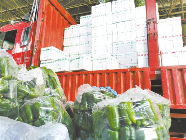 周口黄淮市场蔬菜区经理赵如雷告诉记者, 市场日常消耗品日均进货量在3000吨左右,水果进货量在1000吨左右。记者 王晨 摄
