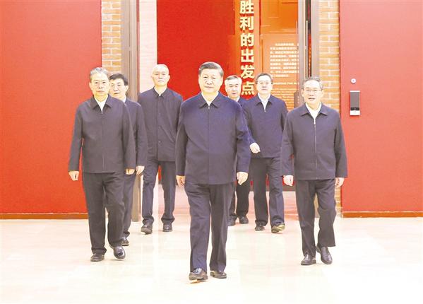 随后,习近平等集体乘车前往延安革命纪念馆,参观《伟大历程——中共中央在延安十三年历史陈列》。