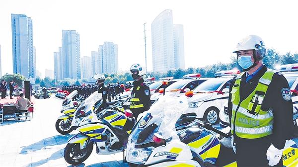 近日,项城市公安局举行深化“一村(格)一警”战略警用装备发放仪式,100辆警用摩托车、30台警用巡逻车等一批警用装备物资被发放至21个派出所等基层一线,为全面做好安保工作提供了坚实的警务保障。记者 张志新 通讯员 牛天慧 摄