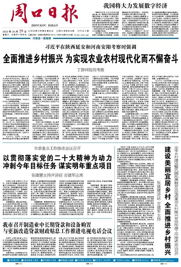 张建慧指出,要提升站位,扛牢责任。要深入贯彻落实党的二十大精神,深刻认识推进乡村建设和巩固拓展脱贫攻坚成果同乡村振兴有效衔接,是推动实现共同富裕的重大责任,是周口实现乡村振兴走在全省前列、率先建成农业强市的重大责任,是加快解决发展不平衡不充分问题的重大责任,必须树牢底线思维,增强政治判断力、政治领悟力、政治执行力,坚定信心决心,加快推进农业农村现代化。