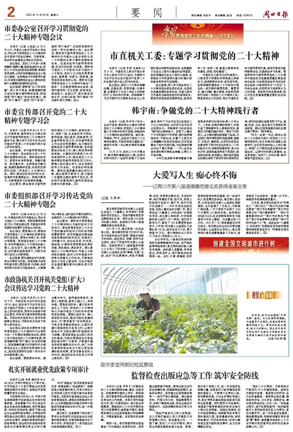 市直机关工委书记闫冬梅表示,工委党员干部要在学深悟透上持续发力,坚持原原本本学、逐字逐句悟,全面准确把握党的二十大报告中提出的一系列新的重要思想、重要观点、重大判断、重大举措,切实把思想和行动统一到党的二十大精神上来。要紧密结合工作实际,制订市直机关学习宣传贯彻方案,谋划开展系列宣传教育活动,迅速掀起学习热潮。要坚持把学习宣传贯彻党的二十大精神与推进机关党建高质量发展紧密结合起来、与全面完成全年目标任务结合起来、与谋划明年及“十四五”工作结合起来,切实把学习成果转化为工作思路、具体抓手和发展成果,转化为机关党建高质量发展的生动实践。②2