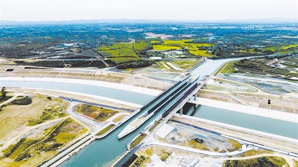 德国马格德堡水桥从1919年构思到最终的建成历时84年,2003年10月正式开通运营。而淠河总干渠钢渡槽建设仅历时4年。淠河“水桥”建设进度更快、规模更大、运力更强,在世界范围内力压群芳。当自然生态环境和现代人文需求互相碰撞交融时,让人无不感叹这项工程的伟大之处。