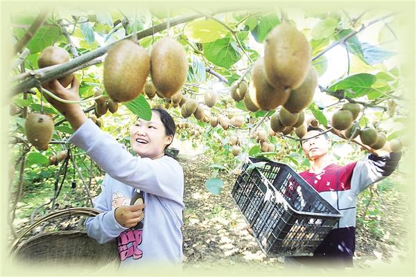 日前,在商水县邓城镇牛张村猕猴桃种植基地,果农正忙着采摘猕猴桃。近年来,该县工商联积极引导返乡农民工依托当地资源优势,采取“公司+合作社+农户”模式,因地制宜发展猕猴桃、葡萄、草莓等特色水果产业,助力农业增效、农民增收。记者马治卫 通讯员 刘飞 摄