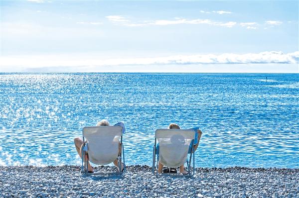 11月2日,人们在法国南部海滨城市尼斯的海边休闲。