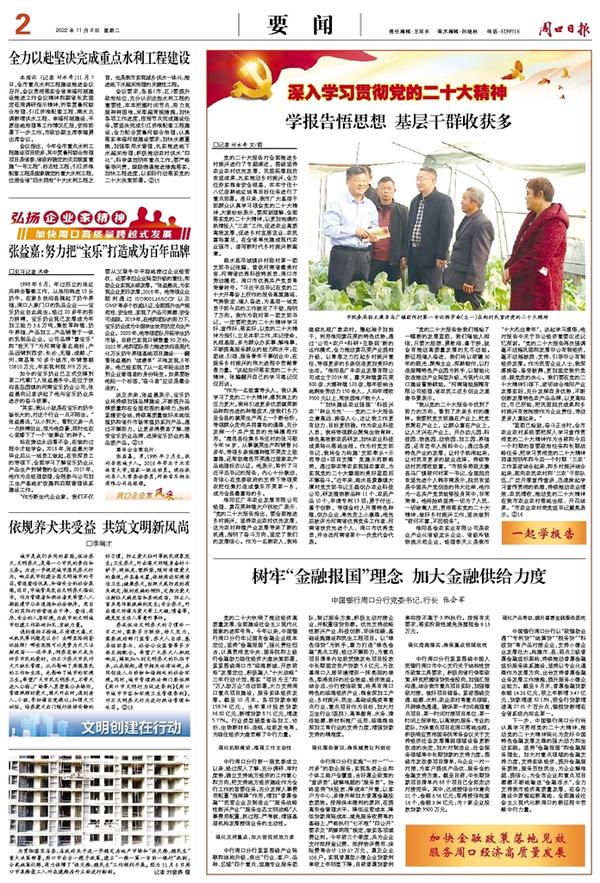 淮阳县金农实业有限公司是农业产业化省级龙头企业、省级冷链物流示范企业,经理李天义是我市“十大杰出青年”,谈起学习感悟,他对报告中关于非公经济重要论述记忆深刻。“党的二十大报告再次强调毫不动摇巩固和发展非公有制经济,毫不动摇鼓励、支持、引导非公有制经济发展。作为民营企业人士,我深感振奋、备受鼓舞,更加坚定我听党话、跟党走的决心。我们要在党的二十大精神引领下,密切结合淮阳产业发展实际,充分发挥自身优势,不断创新发展特色农产品品牌,以更高站位,尽己所能,把巩固脱贫成果和乡村振兴有效衔接作为企业责任,带动更多人富起来。”