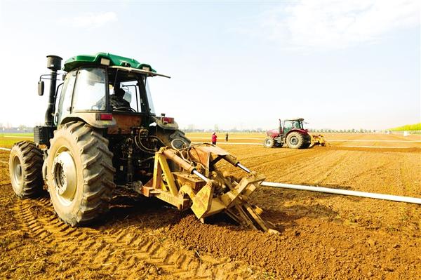 今年以来,郸城县坚持藏粮于地、藏粮于技,高标准规划建设高标准农田,确保旱涝保收。图为高标准农田地埋抗旱管道的施工现场。记者 徐松 摄