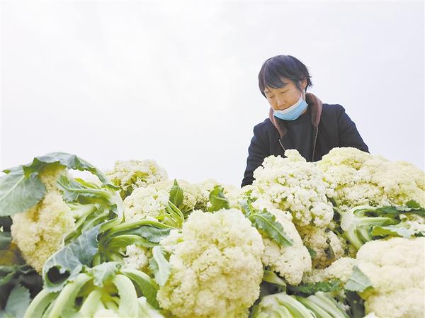 11月9日,淮阳区邢楼村村民在收割有机花菜。近年来,淮阳区在推进乡村振兴过程中,通过“政府引导+合作社带动+农户参与”的经营模式,积极调整农业生产结构,因地制宜发展蔬菜种植产业,保障城乡蔬菜供给,加快农民增收致富步伐。记者 刘俊涛 摄