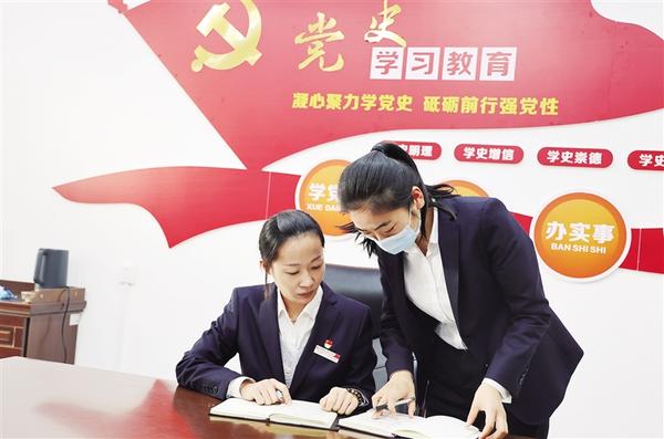 ①淮阳农信联社个人金融部组织工作人员学习党的二十大精神。齐盈盈 摄