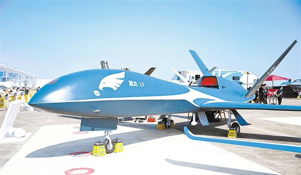 这是航展上展出的翼龙-10B无人机(11月9日摄)。在珠海举行的第十四届中国航展上,一批先进国产无人机和反无人机装备集中亮相。新华社发