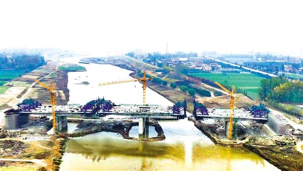 11月10日,西华安康大道贾鲁河大桥建设项目施工现场,工人正在紧张有序作业。该项目位于安康大道东段,横跨贾鲁河,于今年4月份开工建设,目前进展顺利,桥面即将合龙,预计明年6月竣工通车。建成后,将大大改善区域交通状况,进一步加强两岸区域经济联系。记者 张猛 轩洋 摄