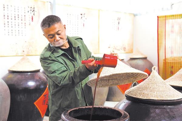 近年来,商水县汤庄乡赵集村坚持把产业发展作为推进乡村振兴的重要抓手,积极探索“党建引领产业发展”特色做法,带动群众增收致富。图为近日李家醋坊负责人查看产品质量。记者 马治卫 摄