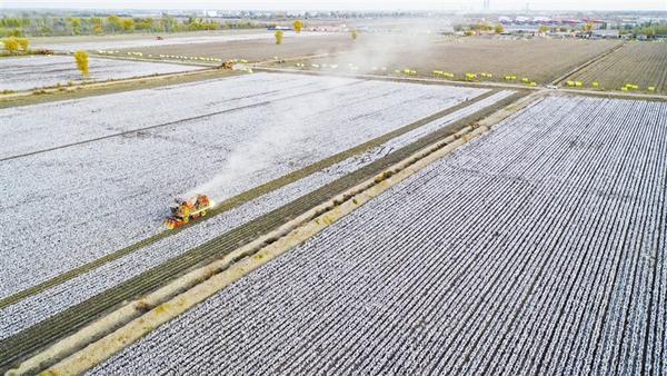 进入11月,全国优质棉生产基地新疆沙雅县190余万亩棉花采收进入尾声。截至11月11日,沙雅县已采收170.6万亩。沙雅县地处塔克拉玛干沙漠北缘,水土光热资源得天独厚,适宜棉花生长,棉花种植面积常年稳定在190万亩左右。新华社发 (柳玉柱 摄)